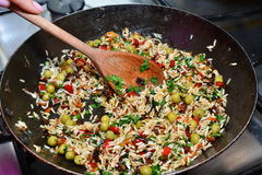 Il faut commencer par laver les moules de manières délicates. Par la suite, sectionner en morceaux le poulet et tailler le chorizo en petites rondelles pas trop fines. Il faut continuer par émincer les poivrons-les oignons et l’ail, écraser les tomates déjà épluchées. Dorez avec de l’huile d’olive ensuite les morceaux de poulet dans une grande poêle à feu vif tout en ajoutant les tomates, l’ail, du safran en fonction de vos envies, du sel et le poivre. Il est essentiel que le tout soit bien mélangé. Tout en remuant le mélange et en réduisant à feu doux, vous devez y ajouter le riz cuit, le chorizo, le bouillon de poulet, les crustacées, et les moules. Il faut laisser le tout durant une trentaine de minute sur le feu avant de le servir au chaud.