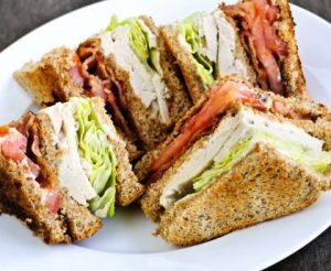 Le club sandwich poulet-bacon ne vous nécessitera que 5 minutes de préparation. Pour une personne, vous aurez besoin de 3 tranches de pain de mie anglais, d’une escalope de poulet, de 2 tranches de bacon, d’une tomate, d’un demi avocat, d’un œuf dur, d’une salade et d’une cuillère à soupe de mayonnaise. Prenez d’abord votre escalope et faites la cuire à feux doux. Faites frire également les tranches de bacon. Sur la première tranche de pain de mie, étalez un peu de mayonnaise, puis disposez de la salade, de l’escalope de poulet que vous aurez préalablement découpé en fines lamelles, des rondelles d’avocat. Salez et poivrez. Pour da deuxième tranche de pain de mie, étalez toujours de la mayonnaise, disposez ensuite les rondelles de tomate et les œufs durs ainsi que le bacon. Recouvrir le tout avec la troisième tranche de pain de mie. Maintenez le tout avec un cure-dents et coupez en diagonale.