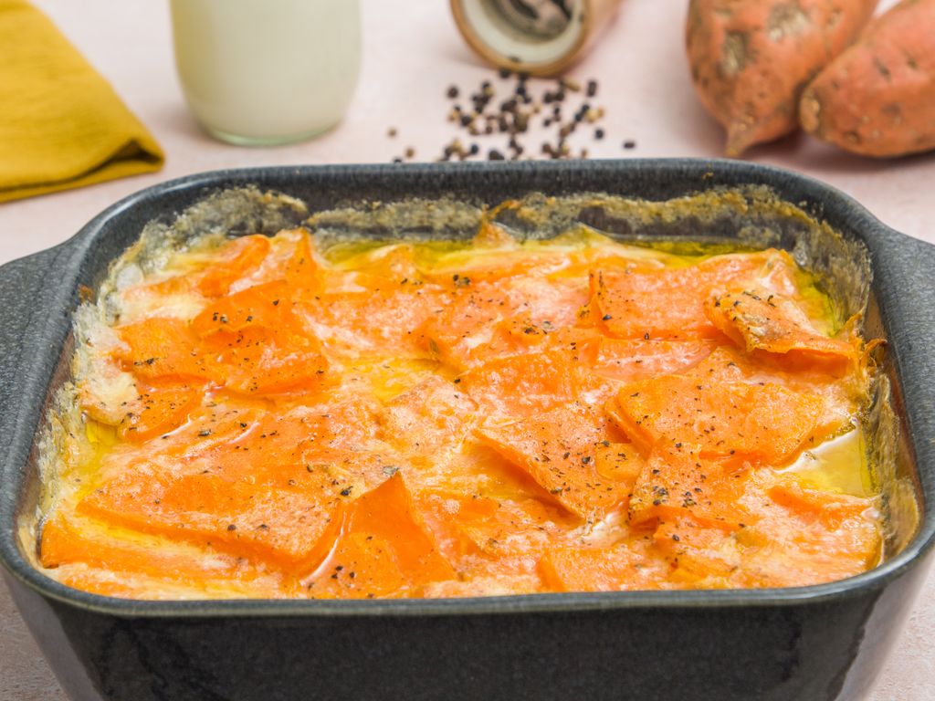 Si le gratin est faisable avec la patate classique, on peut sûrement préparer du gratin avec de la patate douce. Les ingrédients sont : la patate, de la muscade, du beurre, du lait, de la crème et un plat pour le mettre au four. C’est toujours un régal. Pour un bon repas d’hiver ou d’automne, accompagner la avec de la viande.